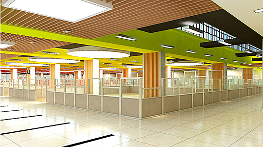 2、顶部吊顶处理,中央空调、通风等合理规划设置;
