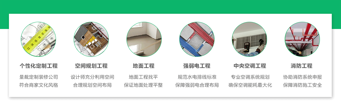严格控制工期,保证质量快速完工(*通常情况下,因店面空间结构不同、限制施工等原因工期另行计算)